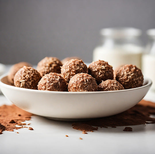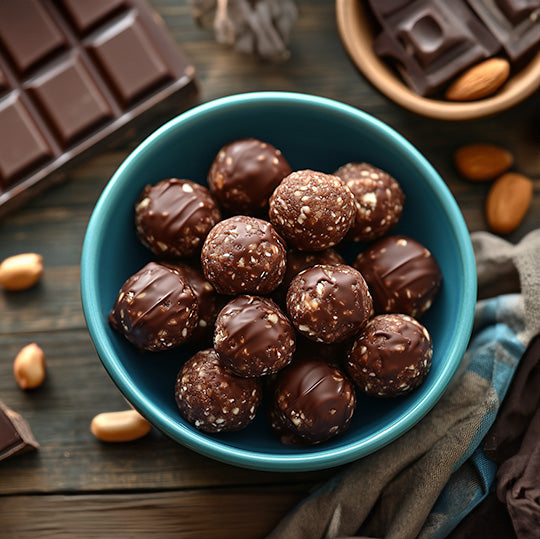 2. Roll into balls and coat with melted dark chocolate